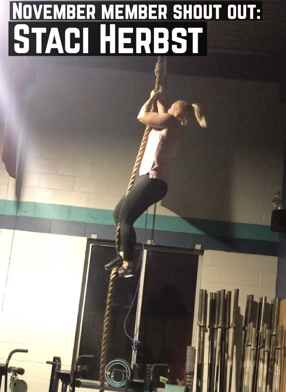 Big shout out to Staci!! She has been working so hard over the last few months. Coming into the world of CrossFit a little nervous I think it’s safe to say she’s found her love for it. She even got her first rope climb last week! We’ve noticed her strength and stamina have increased tremendously so we’re excited to see her continue working hard and crushing goals! Keep up the great work Staci!