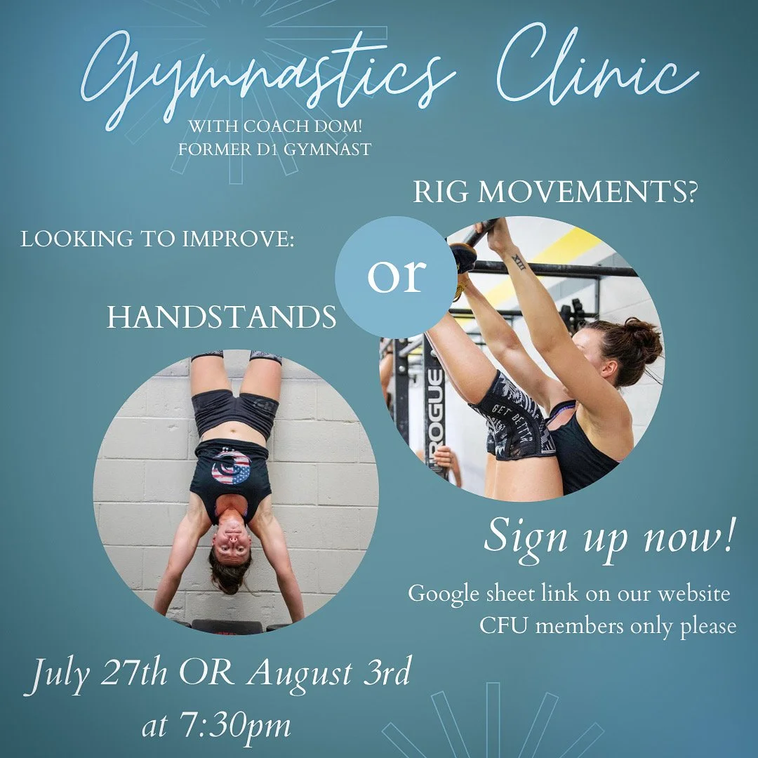Gymnastics clinic sign up! Scroll to the right to find the Aug 3rd column :